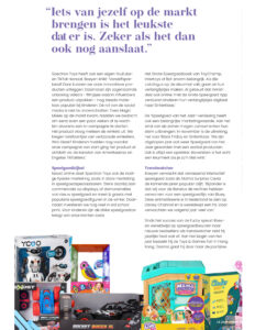 Spectron Toys heeft ook een eigen merk: Gear2Play. Van Boeyen straalt: ‘RC Kombat Mission – twee op afstand bestuurbare stuntauto’s waarmee je kunt battlen – is in eigen huis ontwikkeld. Het product doet het ook goed in het buitenland. Iets van jezelf op de markt brengen is het leukste dat er is. Zeker als het dan ook nog aanslaat. Daar zijn we bijzonder trots op.’